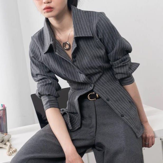 Luna Shirt Fitted Salur Stripe Kemeja Wanita Salur Basic Casual