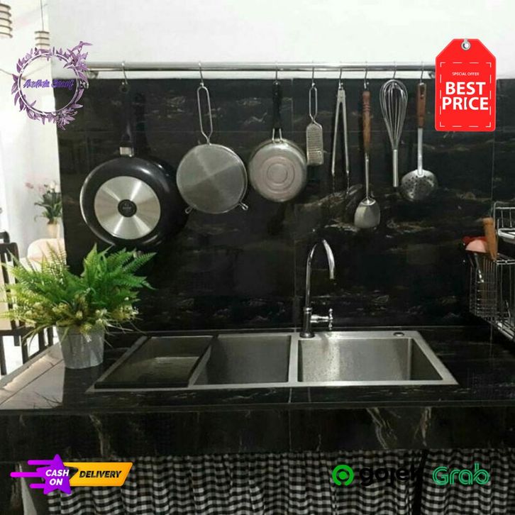 TERLARIS Rak Dapur Gantung Stainless, Rak Gantungan Panci, Rak Dapur Serbaguna, Kitchen Bar 100 cm agogmn