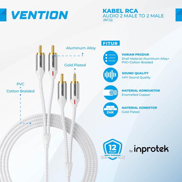 VENTION KABEL RCA AUDIO 2 MALE TO 2 MALE - BCU - GREEN, 0.5 METER