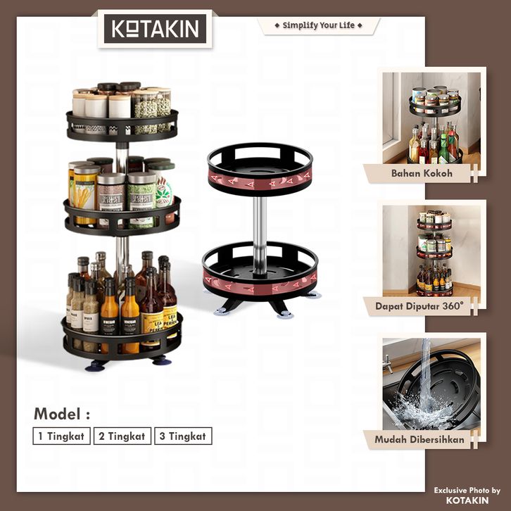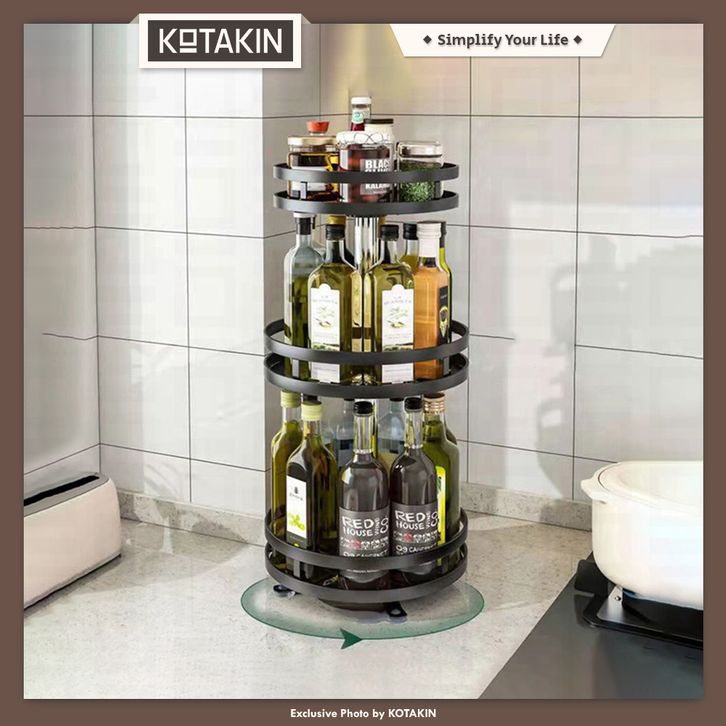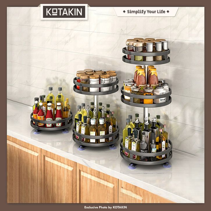 Rak Putar Besi Dapur 360 Derajat Tempat Penyimpanan Bumbu Scincare Sabun Besi Stainless Anti Karat