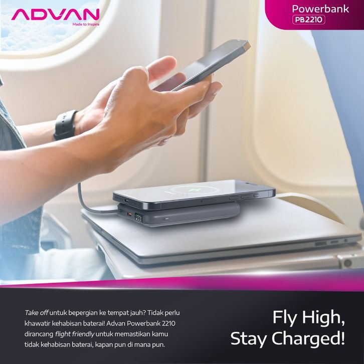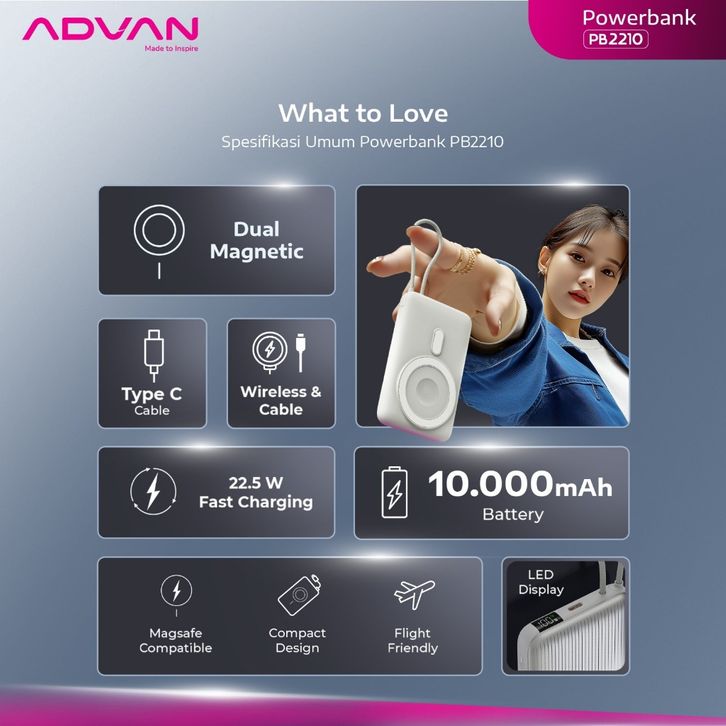 Power Bank Ori ADVAN Wireless Powerbank PB2210 Dual Magnetic 10000mAh Magsafe Fast Charging Speed Intergrated Type C