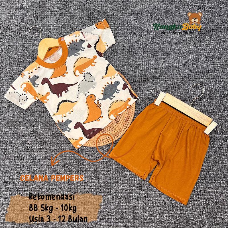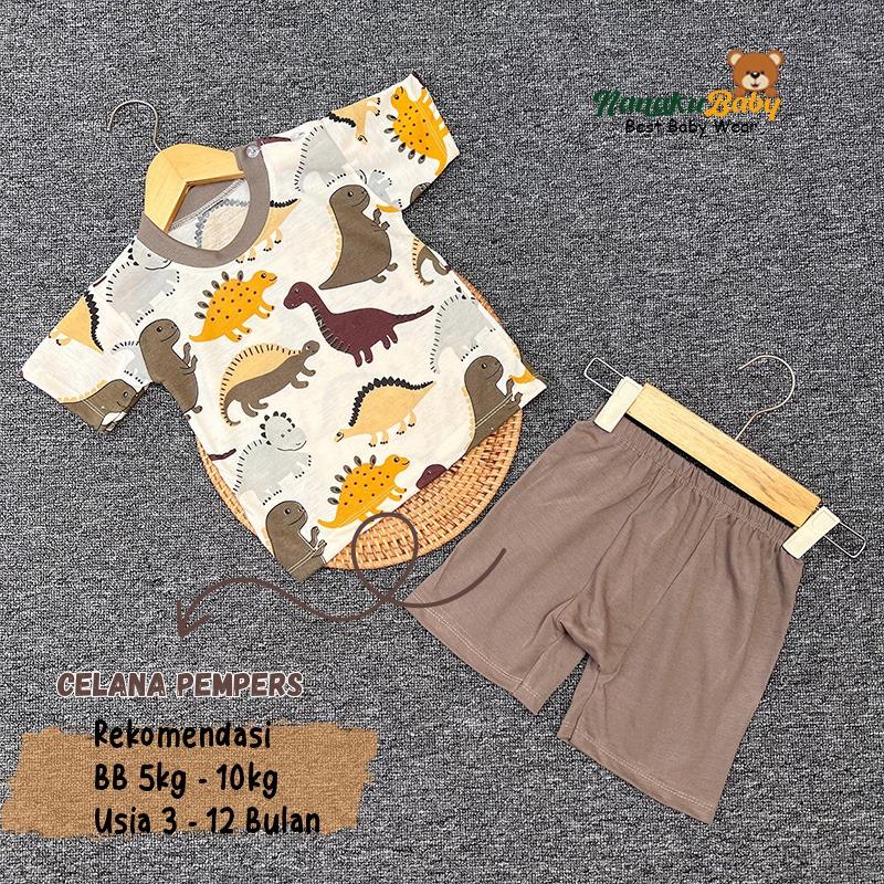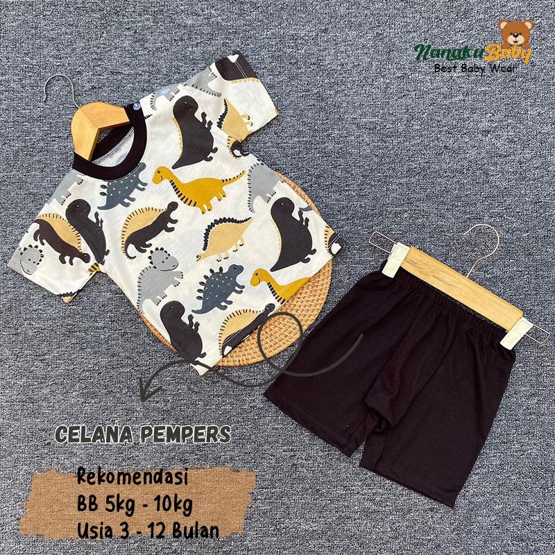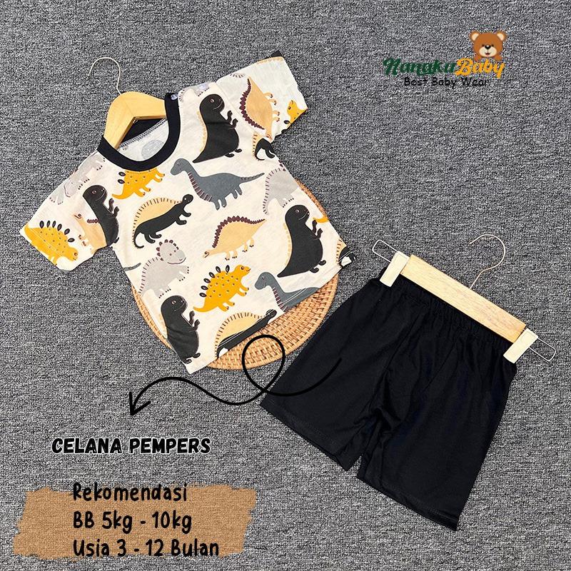 Nanaku Baby - Setelan Harian anak usia 3-12 bulan baju pendek celana pendek motif Dino Stegosaurus