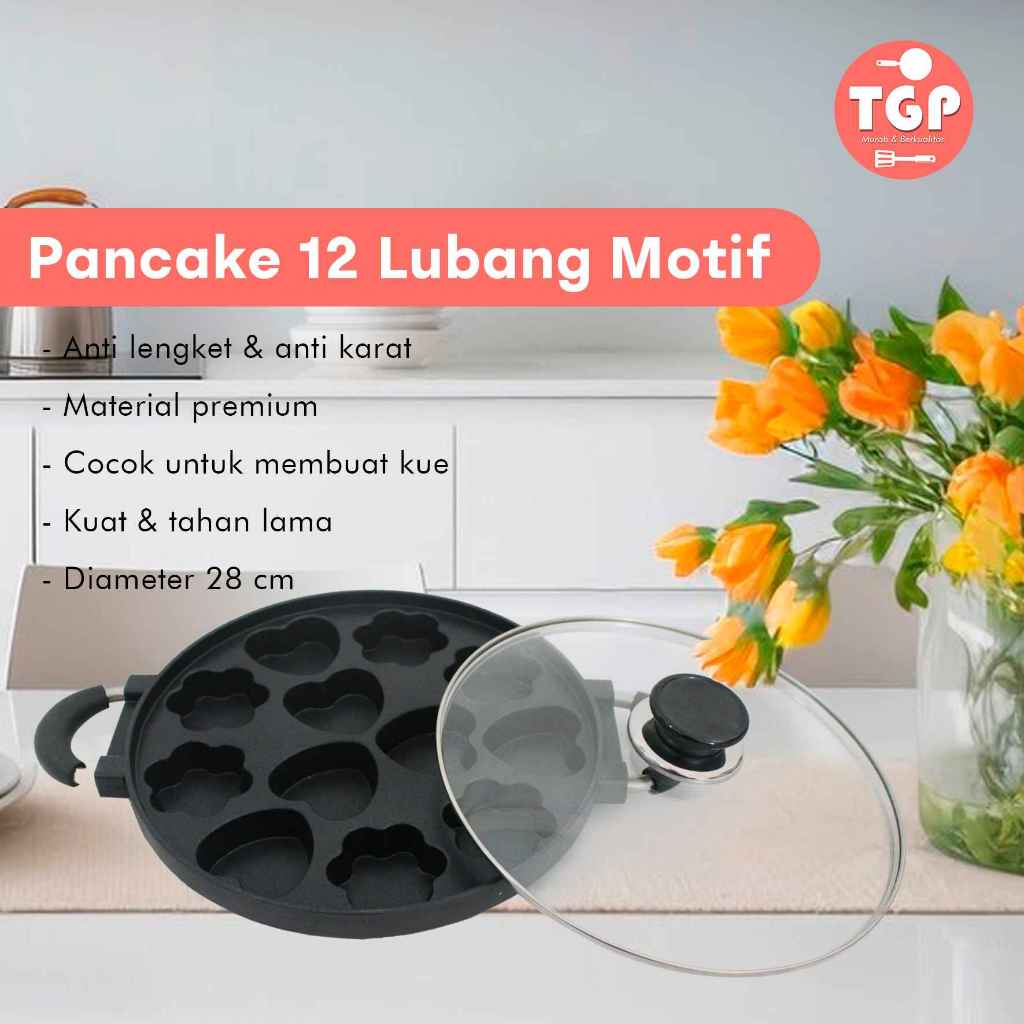 Cetakan Loyang Kue Pancake 12 Lubang Model Motif Idola dan Tutup Kaca