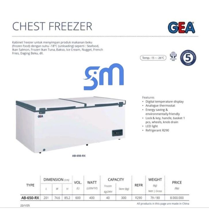FREEZER GEA CHEST AB-650RX 600 LITER AB650RX FREEZER BOX AB 650 RX