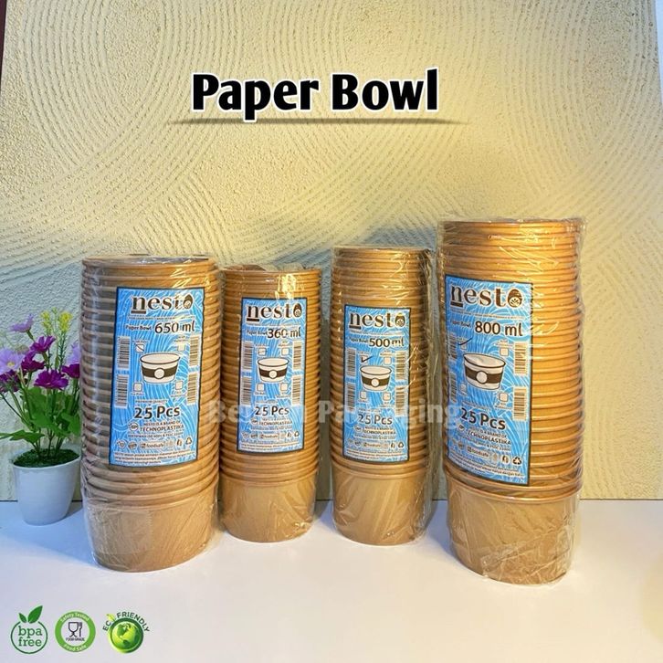 (25pcs) Paper Bowl Kraft Coklat Laminasi | Mangkok Kertas + Tutup | Paper Rice Bowl