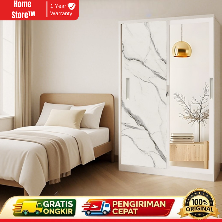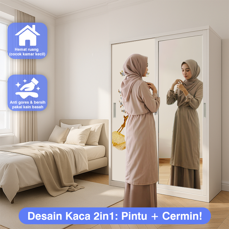 Lemari Pakaian Besi 2 Pintu Sliding Jumbo Panjang - 90cm/120cm 1/2 Batang Rak Baju