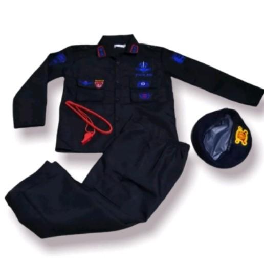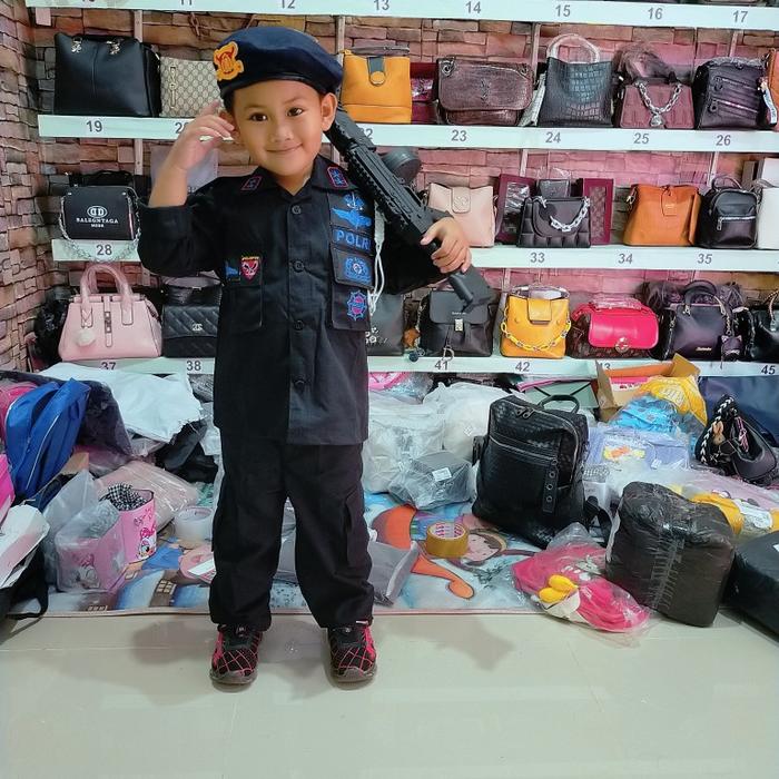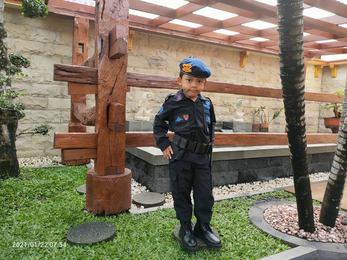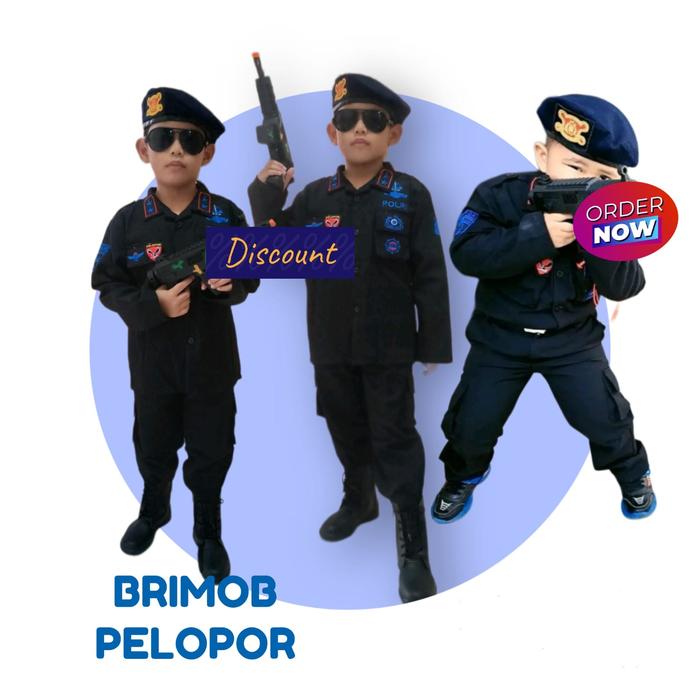BAJU KARNAVAL BRIMOB WARNA HITAM KOMPLIT BORDIR EMBLEM DAN BONUS TEMBAKAN FASHION - HITAM, S