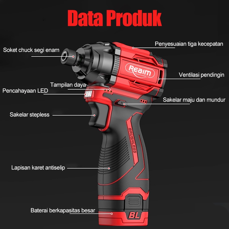 Brushless Obeng 299V tanpa sikat Baterai Screwdriver Kit Alat Perbaikan Multifungsi Torsi 600Nm Obeng Li