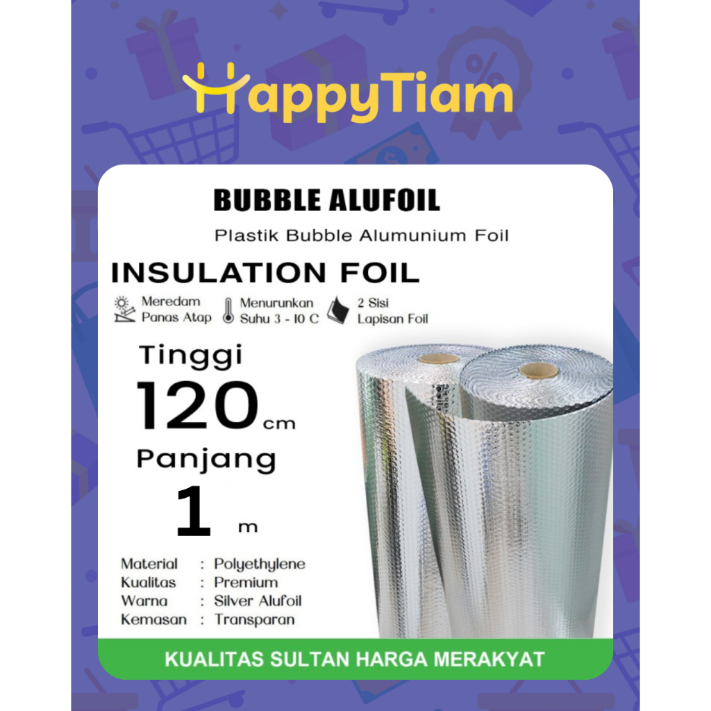 METERAN BUBBLE FOIL ALUMINIUM 120cm x 1m 4mm (5KG 5.5KG 6KG) DOUBLE SIDE WRAP PEREDAM PANAS INSULASI ATAP GENTENG RUMAH