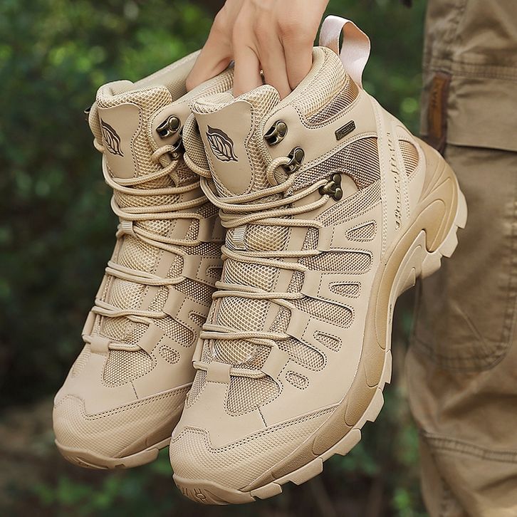 Sepatu Gunung Derlychug Men's Hiking Boots Military Tactical Backpacking Lightweight Desert Boots #803 Beige
