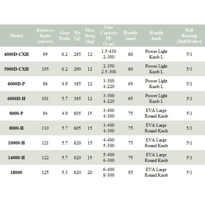 10000-H, 5000D-CXH, 6000D-P, 8000-H, 8000-P