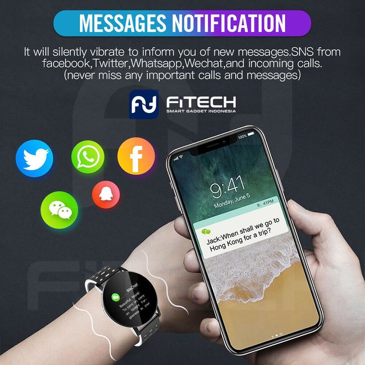 Original Bergaransi FiTech 119 Plus Pro ORIGINAL Smart Watch Fitness Tracker Bluetooth Smartwatch Smartband Android IO