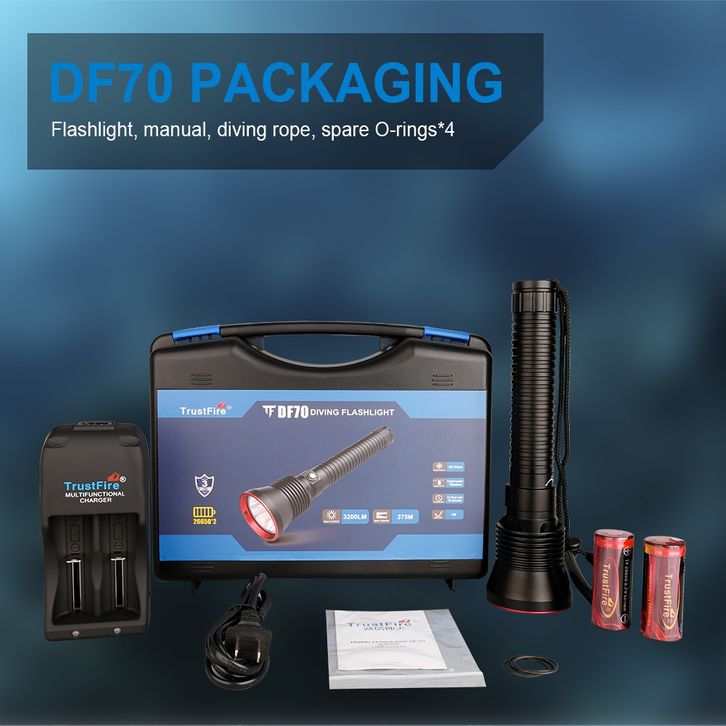Trustpire DF70 3200LM Kit Senter Selam Daya Tahan Dapat Mencapai 13 Jam Penyelaman Maksimal Dapat Mencapai 100M