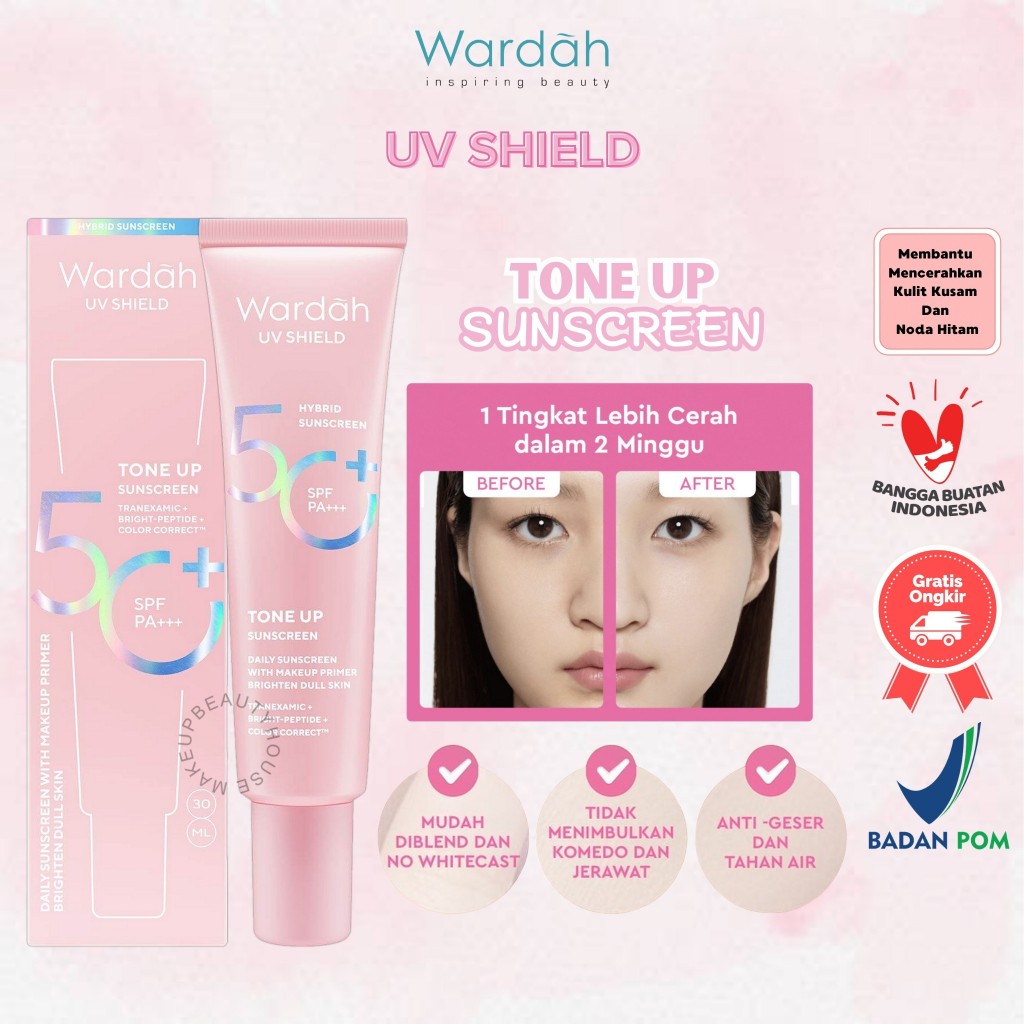 WARDAH UV Shield Tone Up Sunscreen SPF 50+ PA+++ 30ml - Sunscreen Wajah