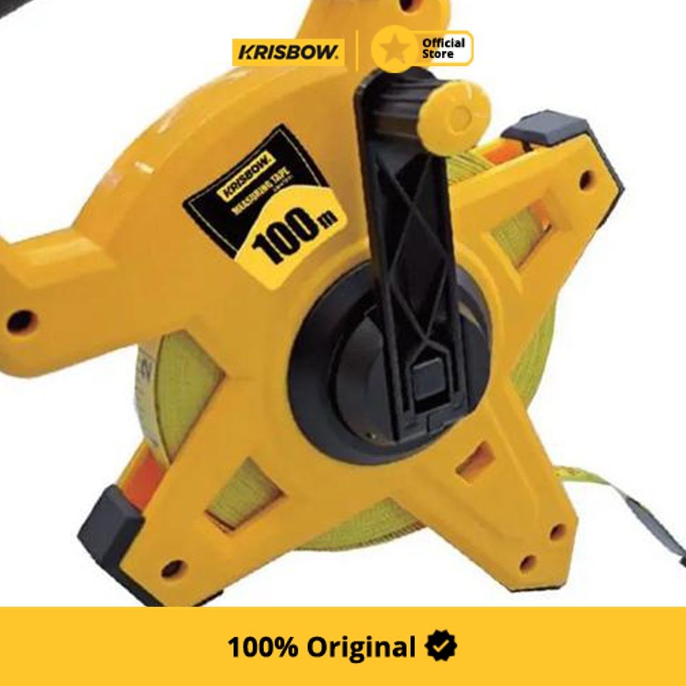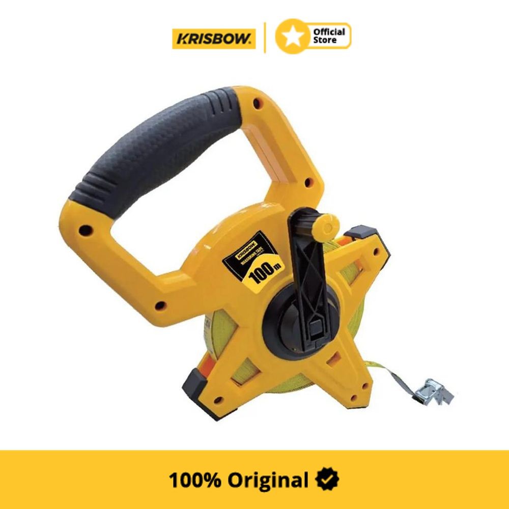 Krisbow 100 mtr Meteran Gulung Fiberglass Lrmtf101 - Kuning Alat Pengukur Barang Alat Ukur Bangunan Measuring Tape Peral