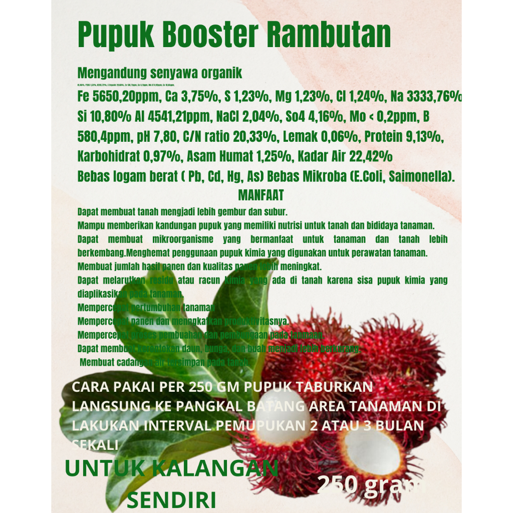 Pupuk Booster Buah Rambutan 250 GR Pupuk Pelebat Rambutan