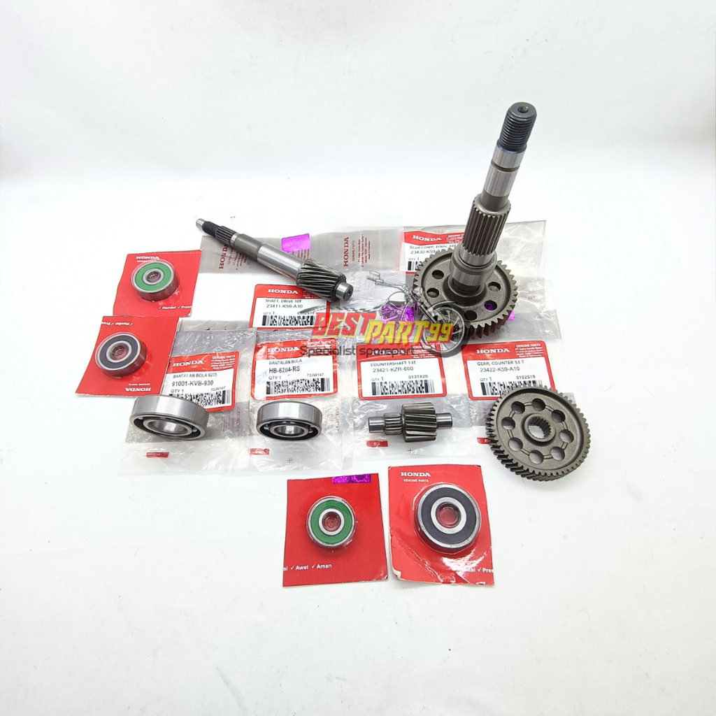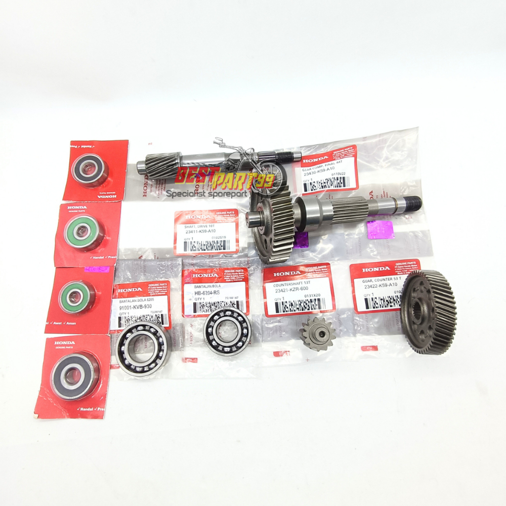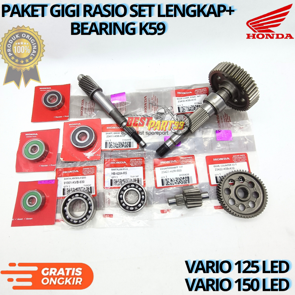Paket Gigi Rasio Set Lengkap + Bearing K59 untuk Motor VARIO 125 LED, VARIO 150 LED. AHM Berkulitas Original Asli Ori da