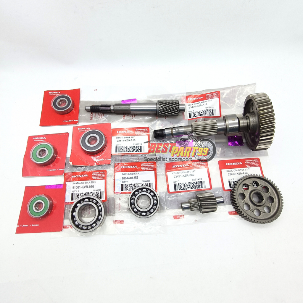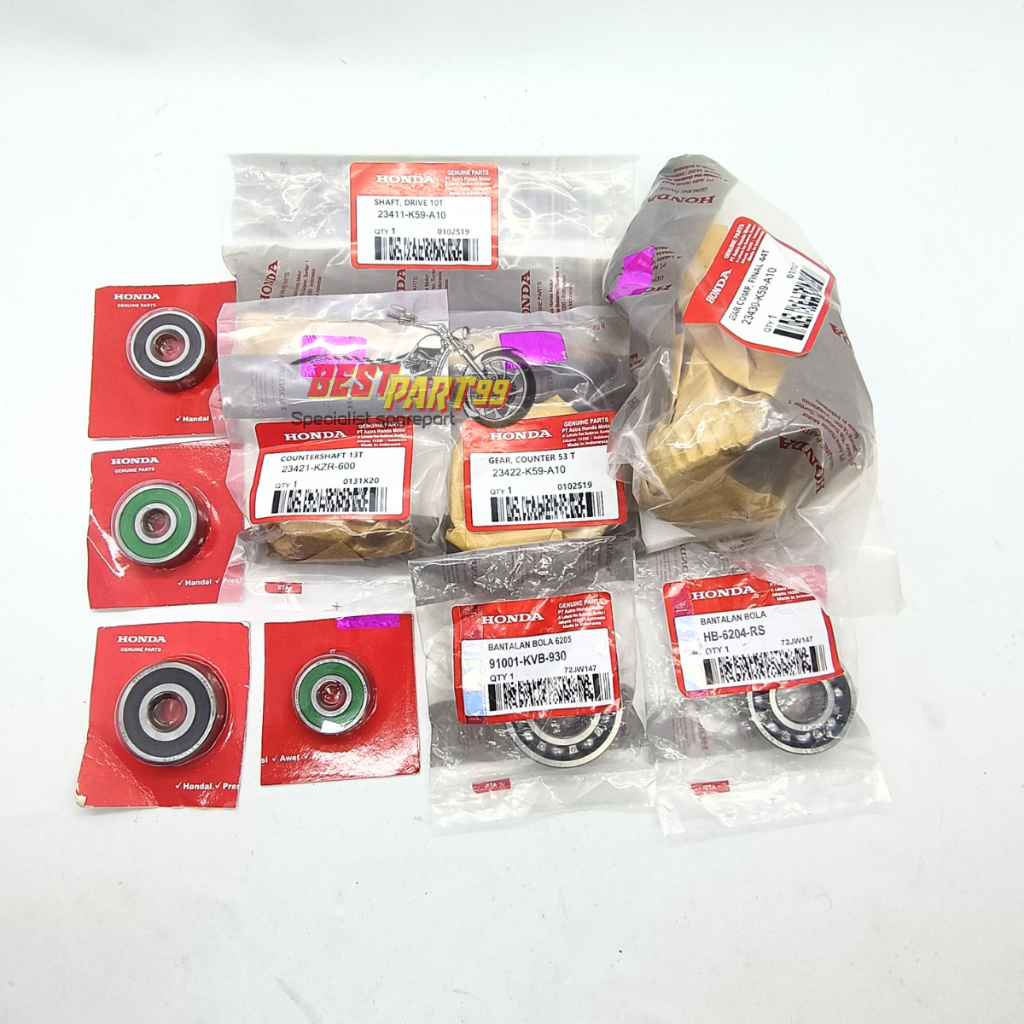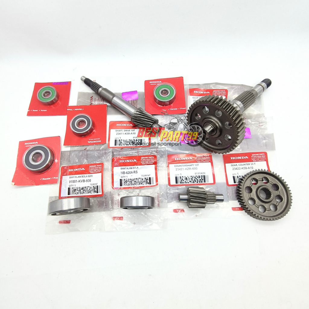 Paket Gigi Rasio Set Lengkap + Bearing K59 untuk Motor VARIO 125 LED, VARIO 150 LED. AHM Berkulitas Original Asli Ori da