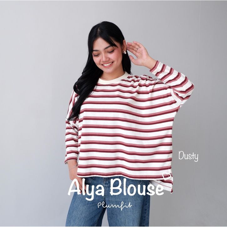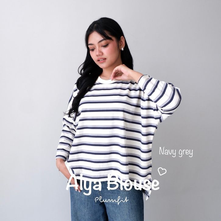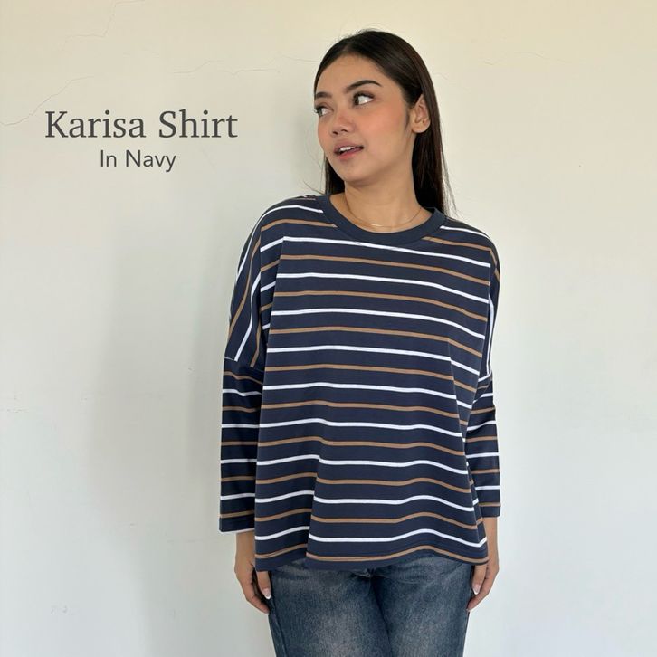 PLUMFIT Kaos Wanita Oversize Motif Garis Matterial Cotton Combed Karisa Shirt