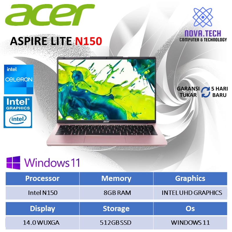 Acer Aspire Lite N150 Laptop Celeron Ram 8GB 512GB Ssd Windows 11 PINK, BLUE, SILVER