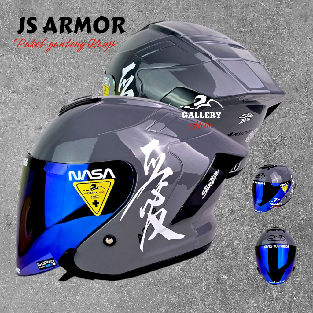 Helm Js Armor Carbon Paket Ganteng Kanji | Visor Iridium - Half Face Sni