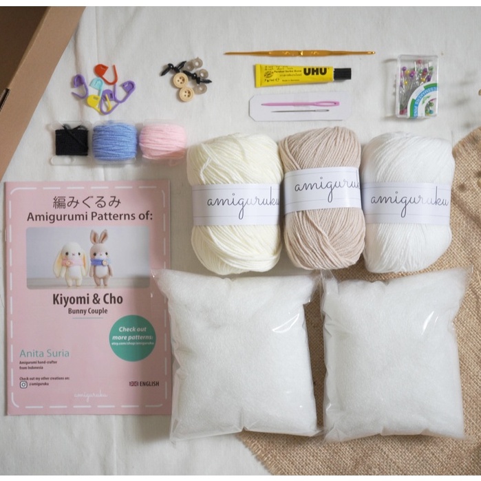 PG - Paket Rajut DIY Kits Amigurumi Boneka Rajut Crochet Kelinci - Couple Bunny Kiyomi Cho