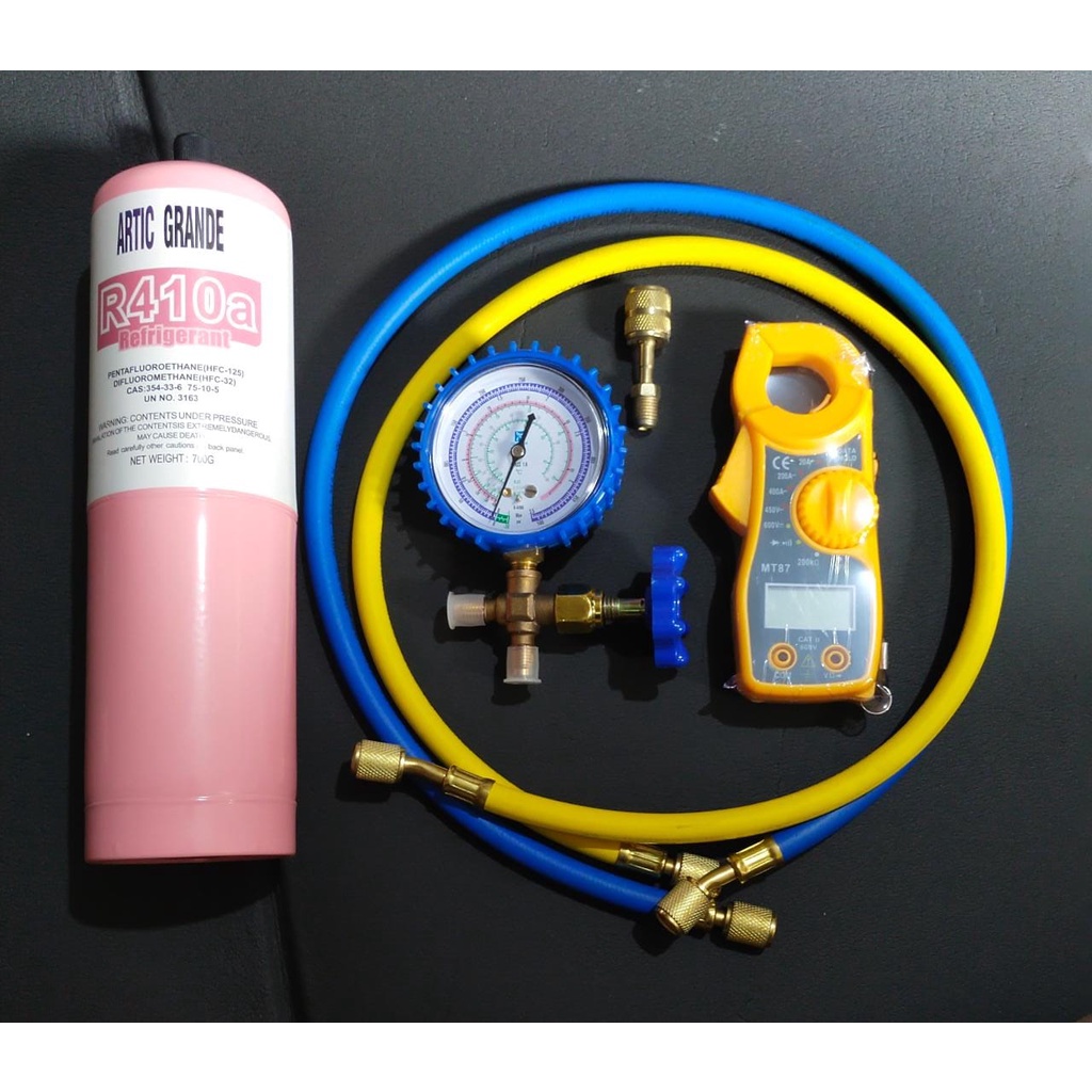 PAKET ALAT PENGISIAN FREON AC RUMAH R410A SINGLE MANIFOLD + TANG AMPERE