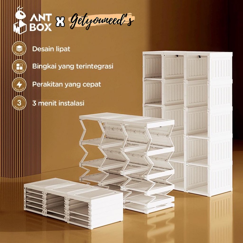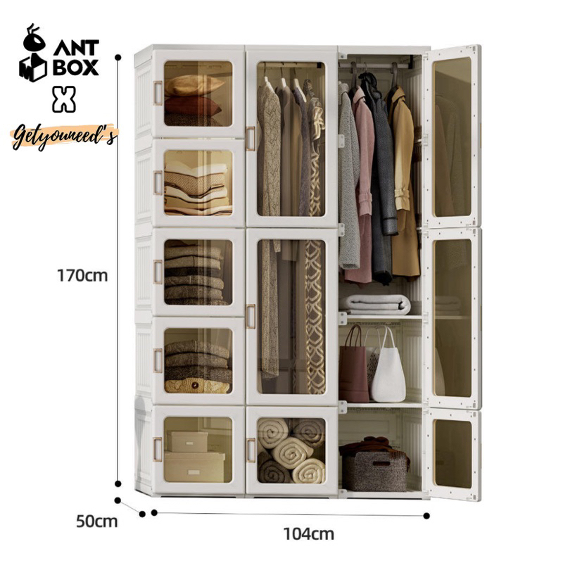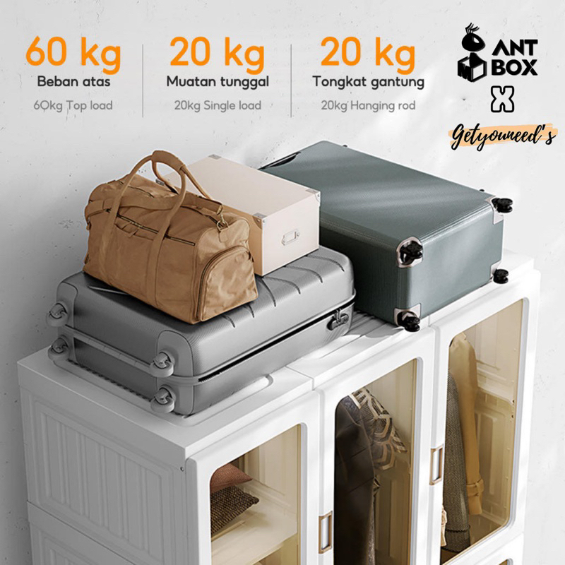 ANTBOX Rak Lemari Baju Tas Kabinet Storage Bahan Plastik Berkualitas Kokoh Anti Rayap