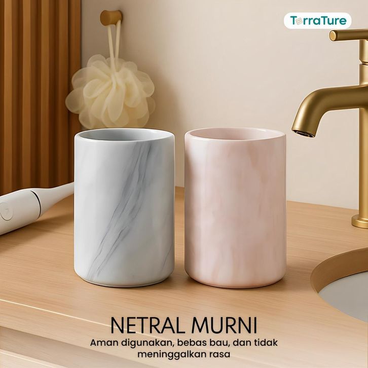 BARU TerraTure Gelas Sikat Gigi Porselen Mouthwash Cup Gelas Kumur Tempat Odol dan Sikat Gigi Toothbrush Holder