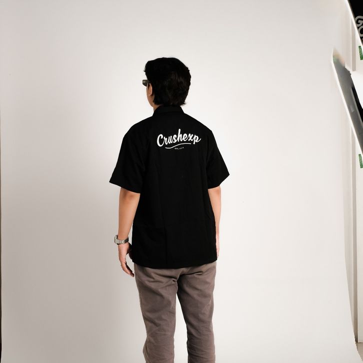 CRUSH EXP Kemeja Pendek Kemeja Bengkel Kemeja Vintage Shortsleeve Shirt Work Shirt KCP0581 BLACK
