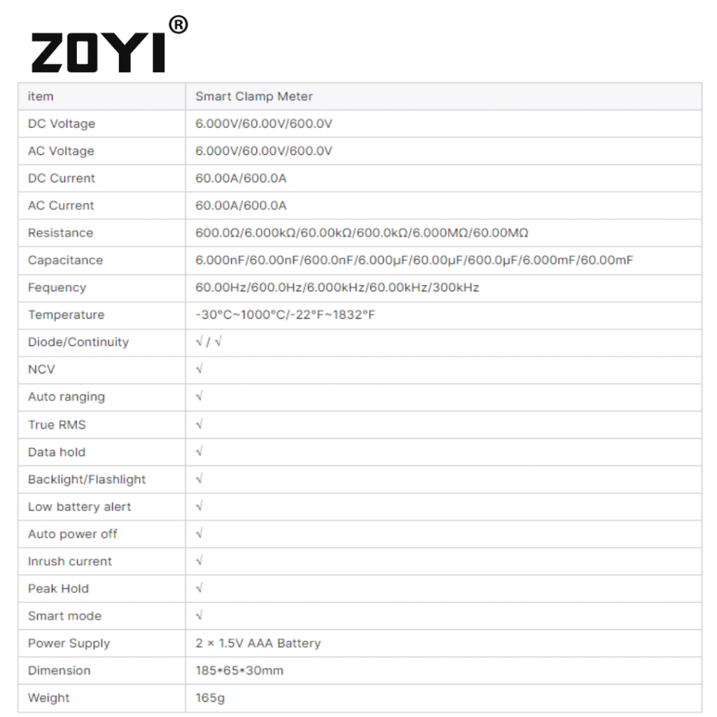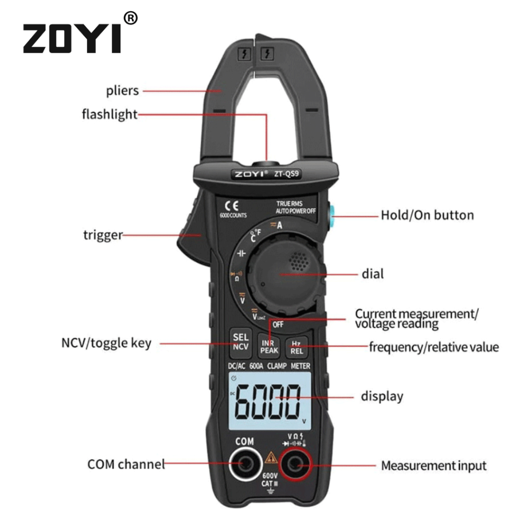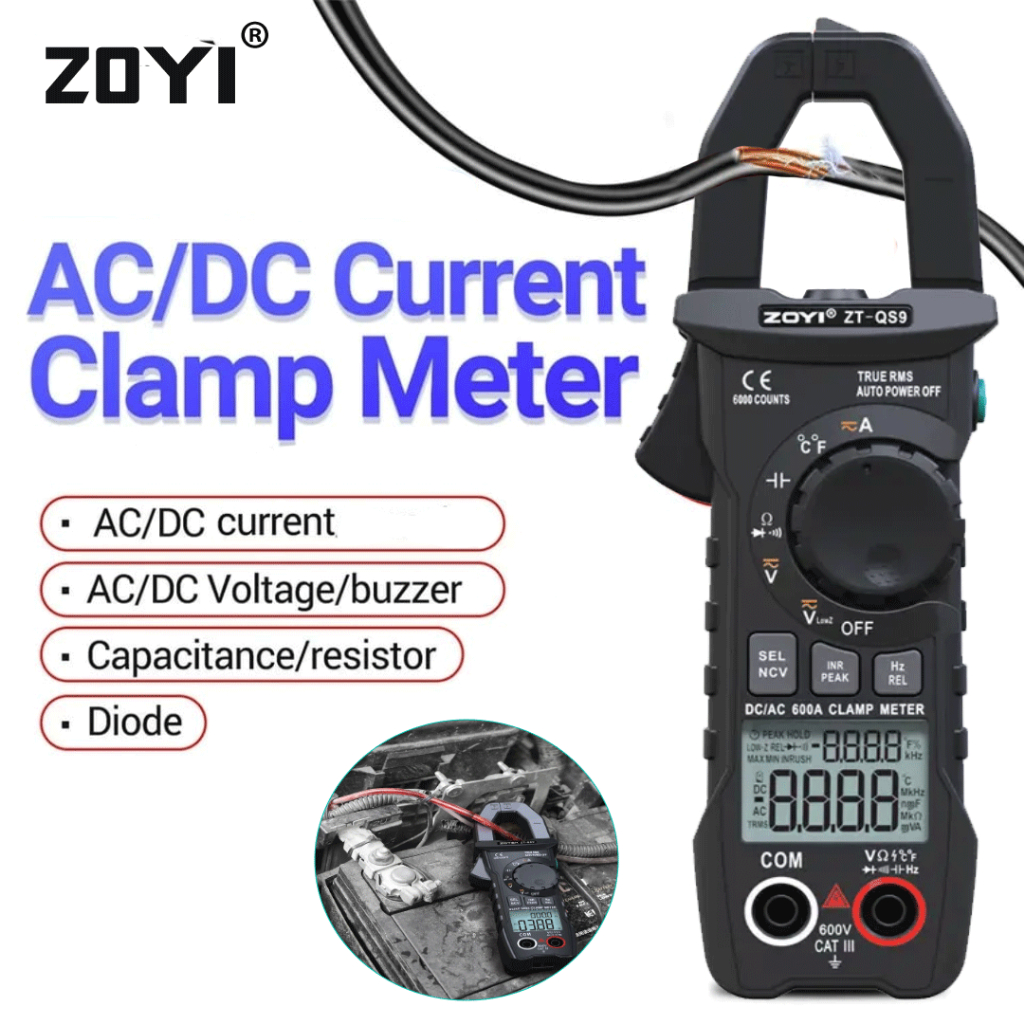ZOYI ZT-QS9 Digital Clamp Meter 600A DC AC Ammeter Voltage Tester