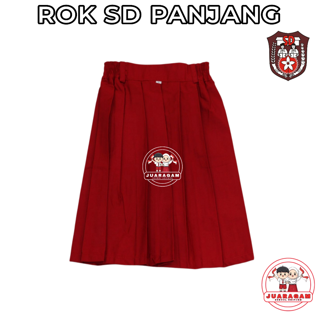 JUARAGAM Setelan Super Lengkap Seragam Sekolah SD Merah Putih Perempuan Baju Pendek Rok Pendek Kelas 1-6 SD