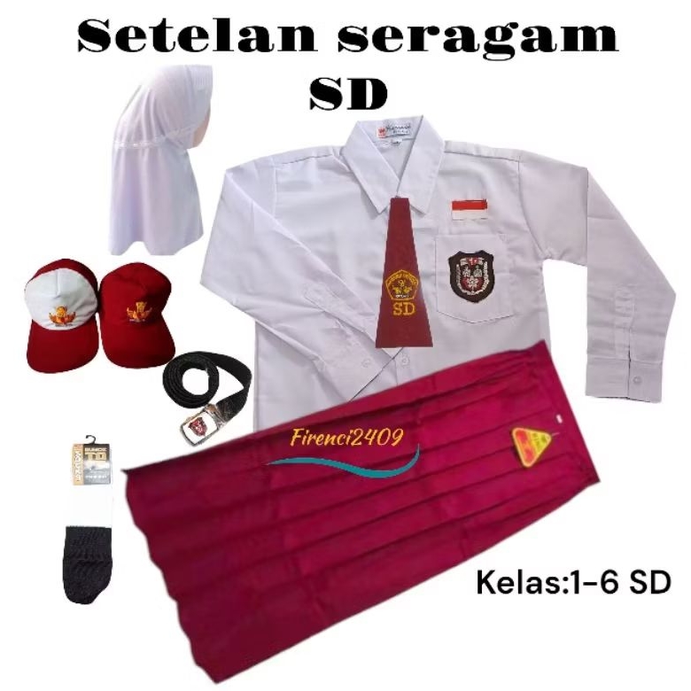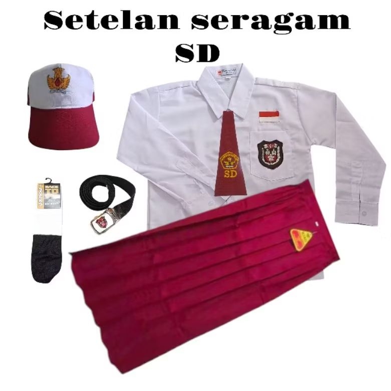 Setelan seragam sekolah SD merah putih anak perempuan kelas 1-6 SD Set baju panjang SD rok panjang merah