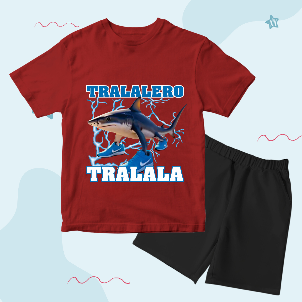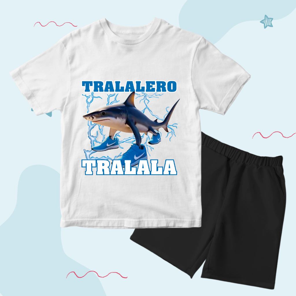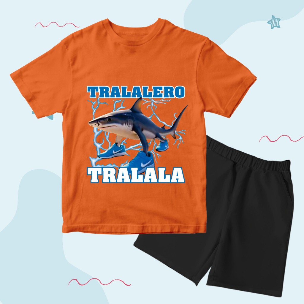 BAJU KAOS SETELAN DISTRO ANAK LAKI LAKI TEMA ANOMALI KARAKTER TRALALERO TRALALA KEREN 1 - 10 TAHUN