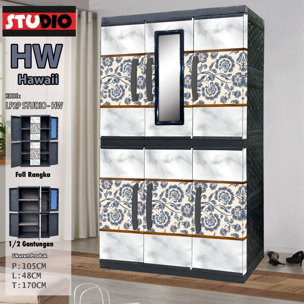 LEMARI PAKAIAN PLASTIK 3 PINTU JUMBO BESAR GANTUNGAN KACA STUDIO