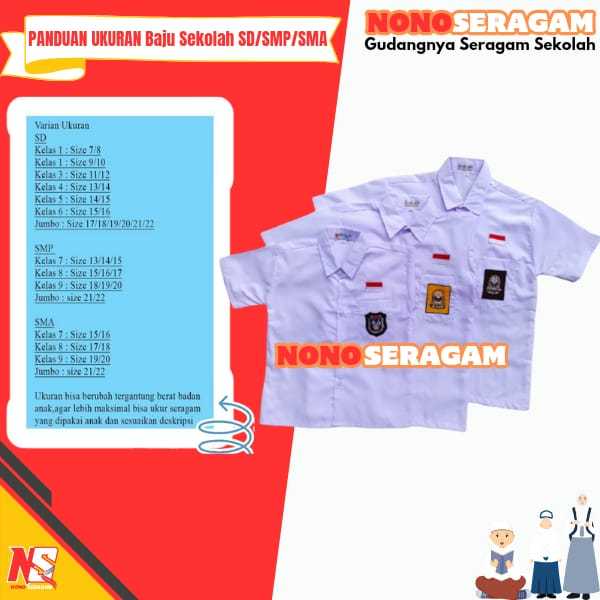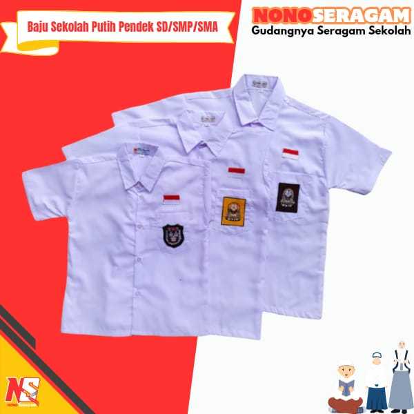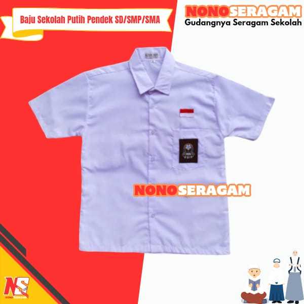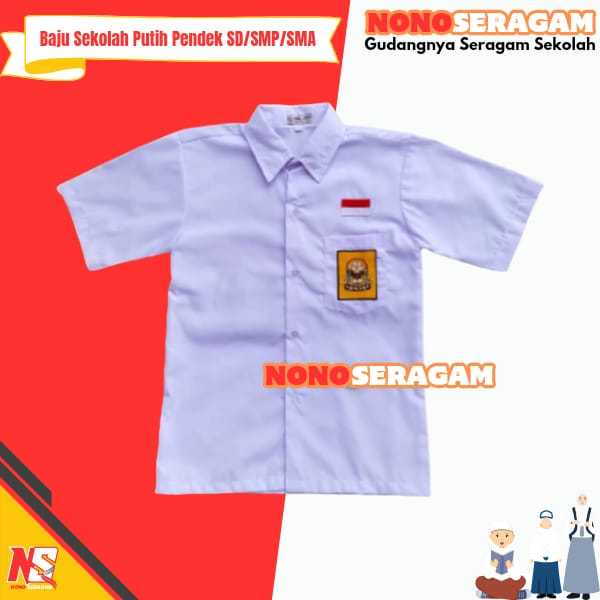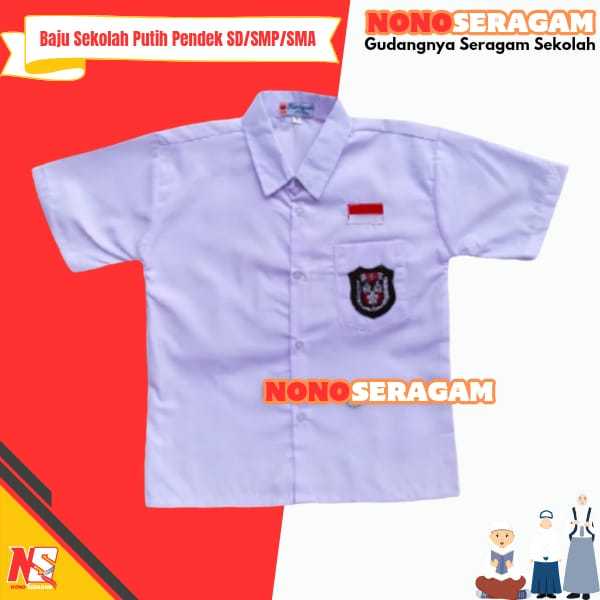 Seragam Sekolah SD SMP SMA Kemeja Putih Baju Atasan Lengan Pendek Bet Bordir Kain Oxford