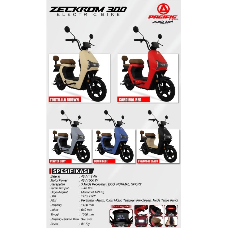 SEPEDA LISTRIK PACIFIC ZECKROM 300 500 WATT 48V / 12 AH BERGARANSI RESMI