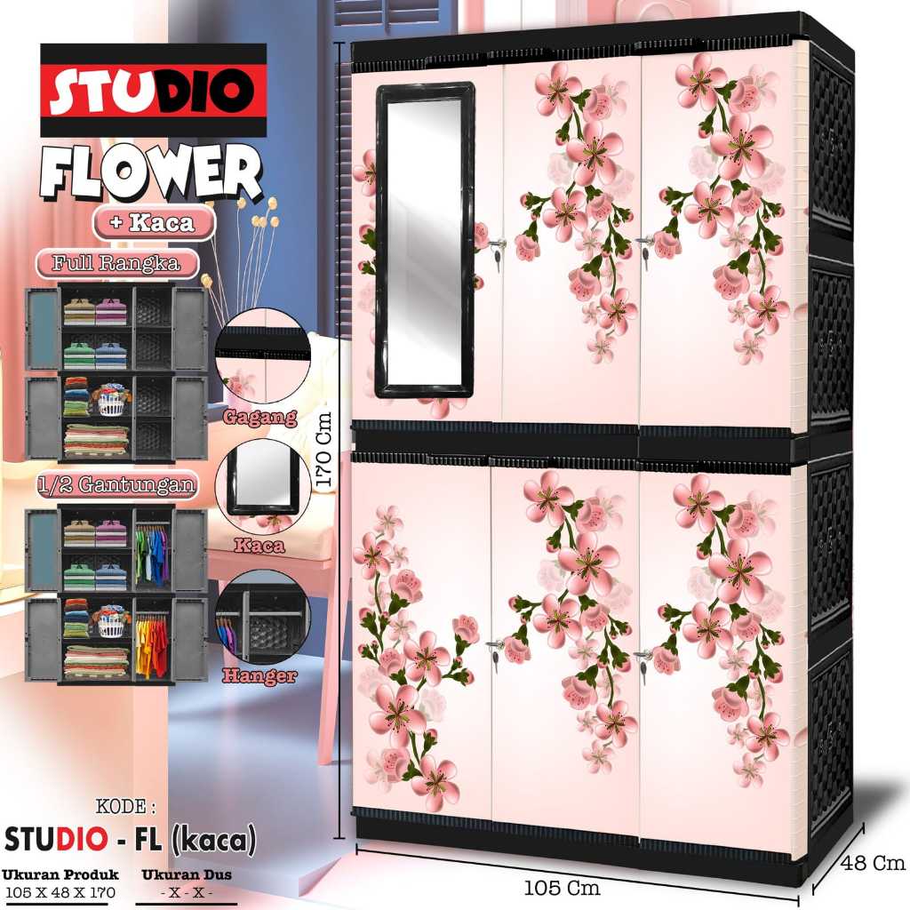 LEMARI PAKAIAN PLASTIK 3 PINTU JUMBO BESAR GANTUNGAN KACA STUDIO