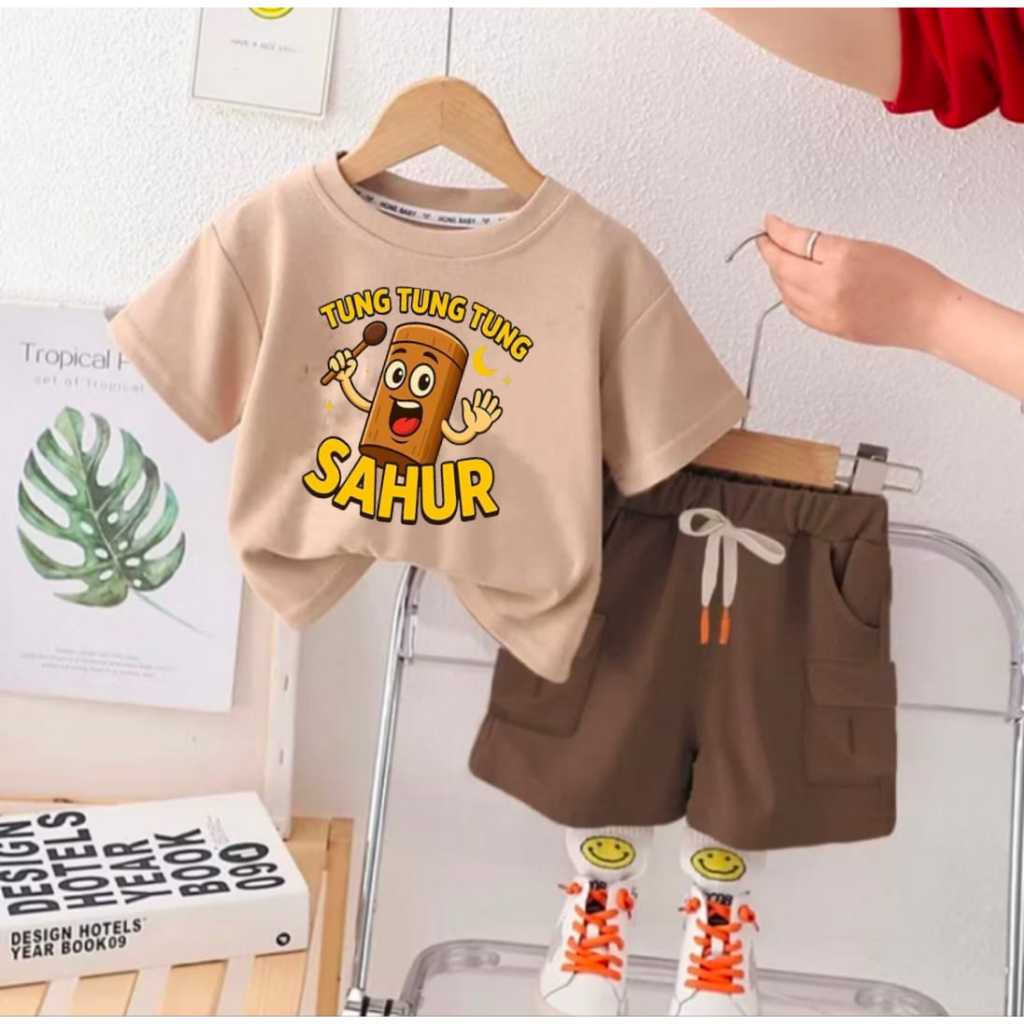 ANOMALI TUNG TUNG TUNG SAHUR SETELAN BAJU ANAK CELANA PENDEK SETELAN ANAK LAKI LAKI PEREMPUAN VIRAL USIA 1-5 TAHUN