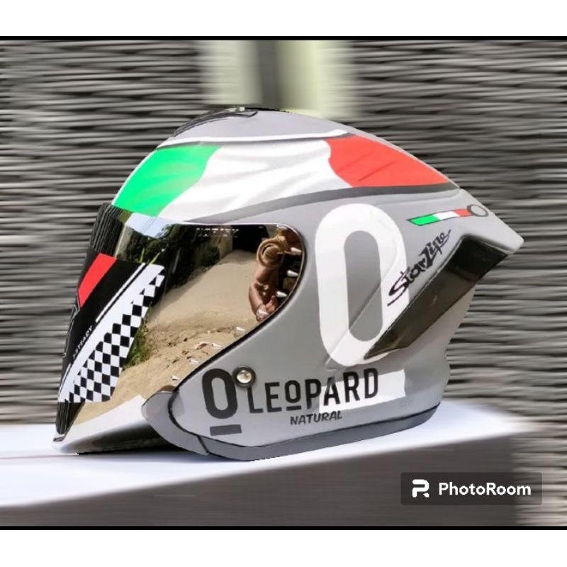 Helm Js Armor Paket Ganteng || Motif Leopard Aquamarine & Polos Sni Dewasa Termurah
