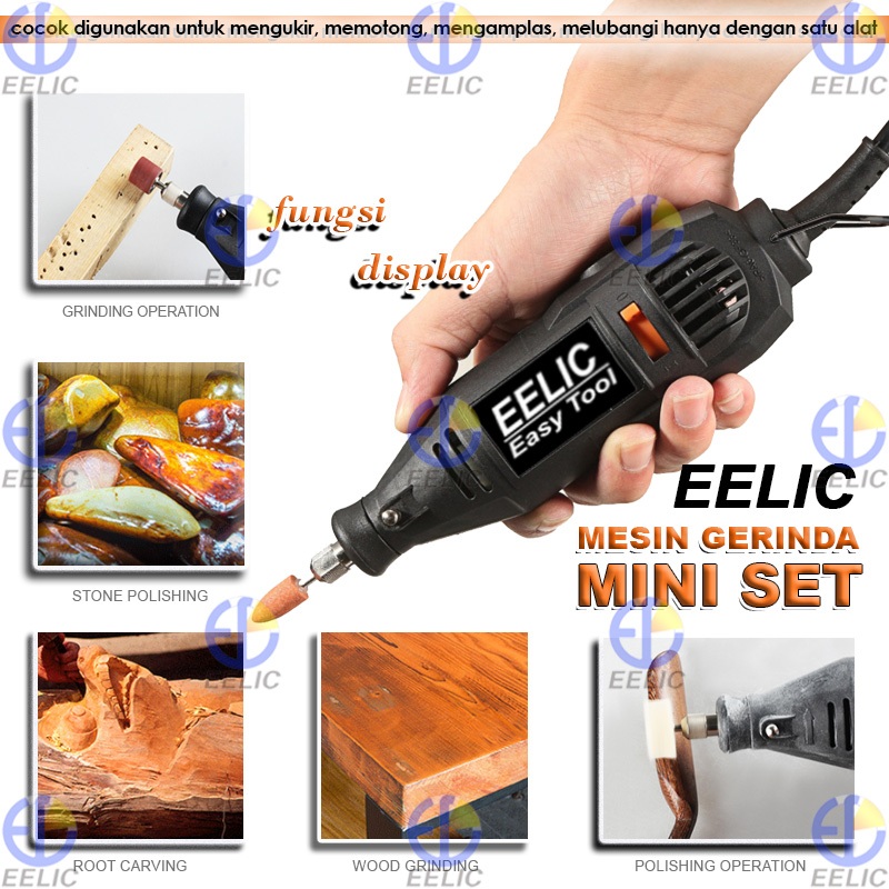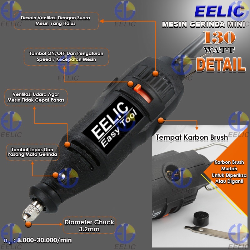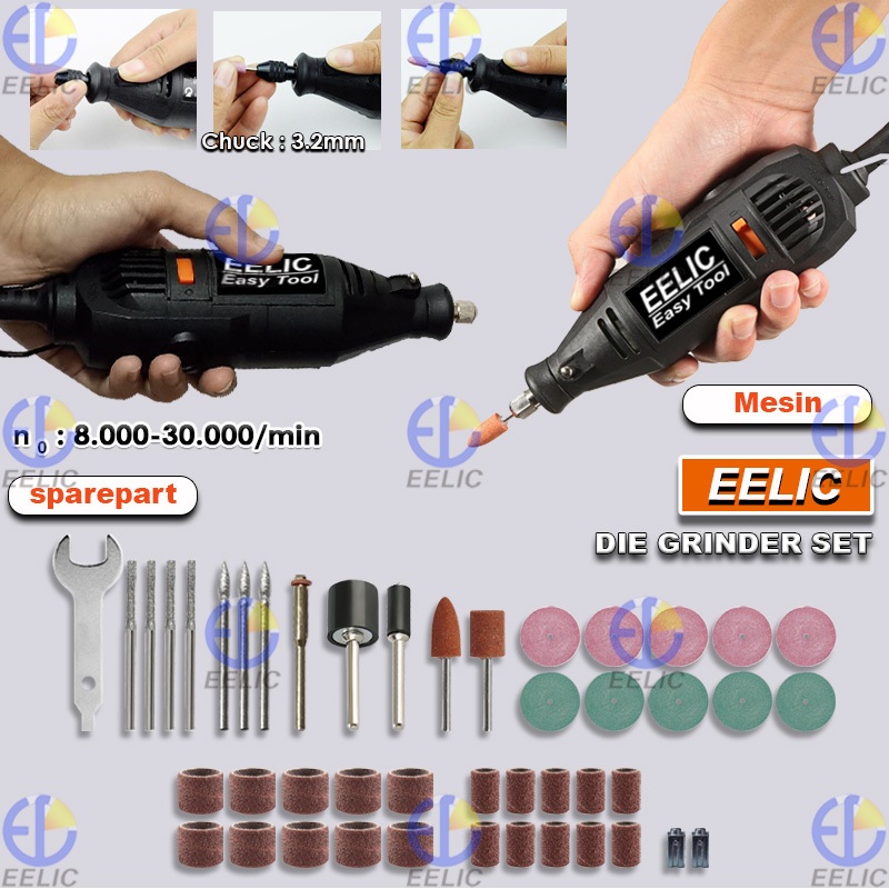 EELIC MEG-J125POLOS Mesin gerinda mini set polos die grinder 3mm lengkap dengan sparepart