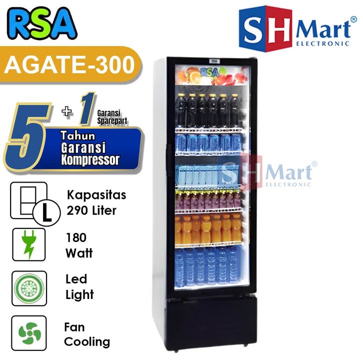 SHOWCASE RSA KAPASITAS 290 LITER AGATE300 5 RAK AGATE 300 KULKAS PENDINGIN MINUMAN GARANSI RESMI PROMO