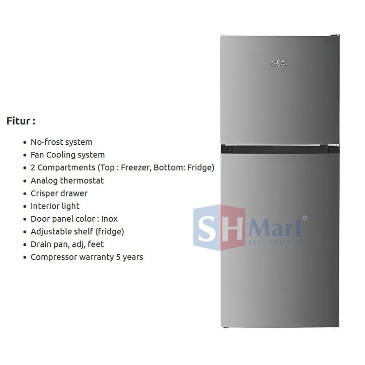 KULKAS 2 PINTU GEA G2HD-198 / G2HD198 KAPASITAS 198 LITER INOX NO FROST GARANSI RESMI PROMO