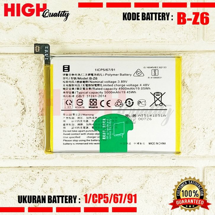 Baterai viv-o Y27 Edisi 5G V2302 / iQOO Z6 F3303 Battery B-Z6 / BZ6 Batre High Quality