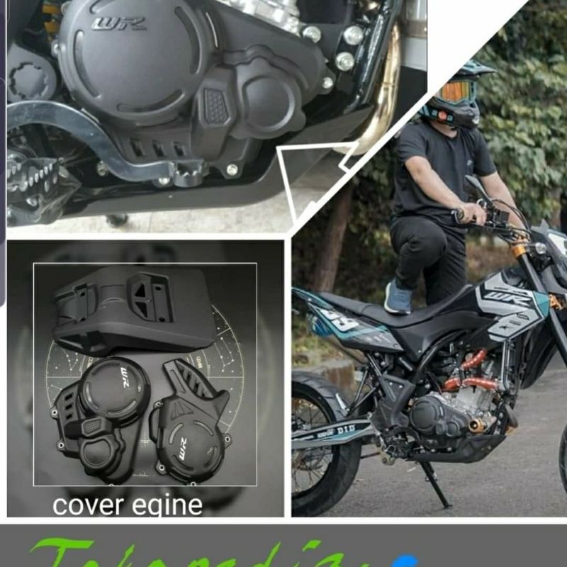 cover engine tutup mesin plus cover magnet dan kopling Yamaha WR 155 R, Hitam & Biru