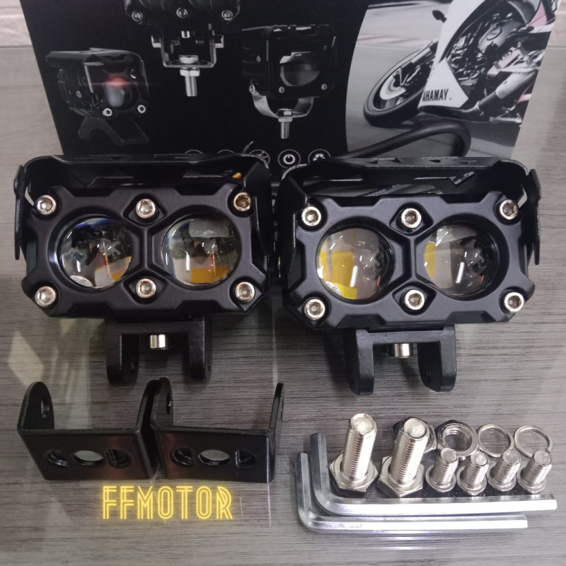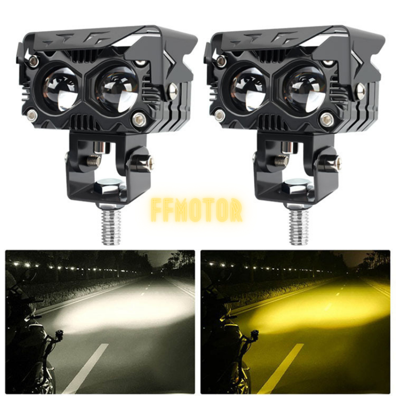 Lampu tembak sorot 2 mata 2 Led laser gun high low putih kuning super bright 1 set