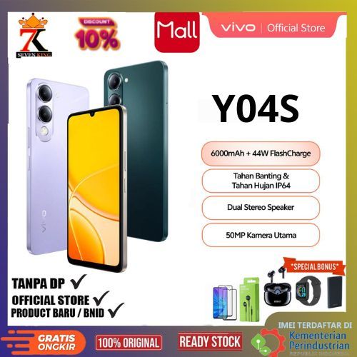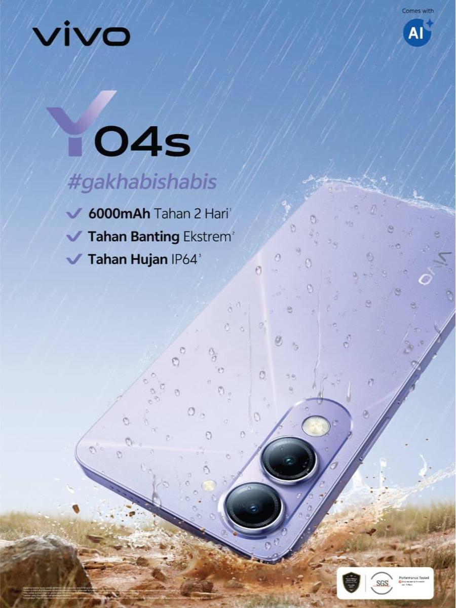 [Official Store ✔️] Vivo Y04s 4+4/64GB - 13MP AL Camera, 6000mAh+15W Flash Charge, IP64 Dust Waterproof - RESMI