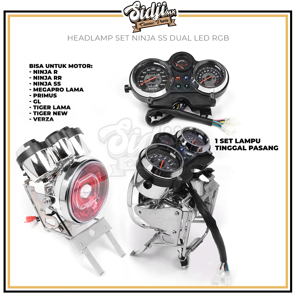 Paket Headlamp Lampu Depan Ninja SS Dual Led Sportsday Megapro Primus Hiu Mono New Tiger Old New CB GL Vixion Verza Ninj