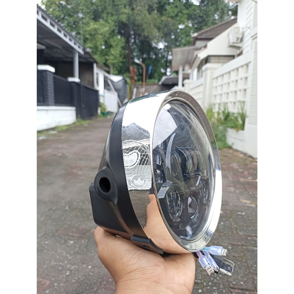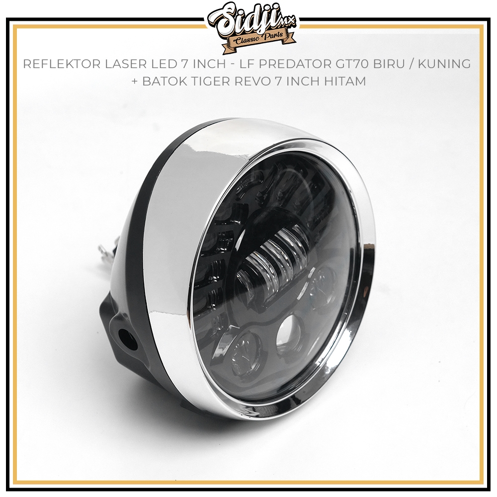 Paket Reflektor Predator 19 LED Putih Kuning Plus Batok Tiger Revo 7 inch Hitam Tiger Revo Megapro Hiu