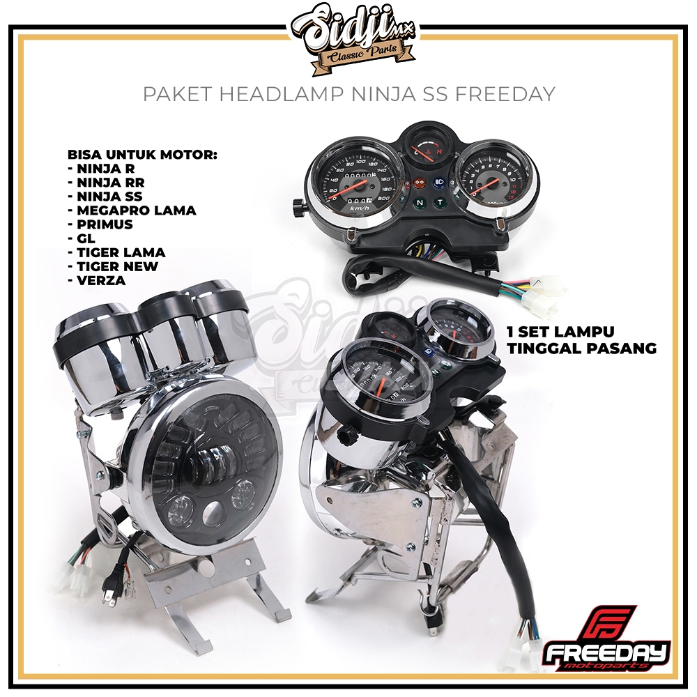 Set Lampu Depan Headlamp Dan Kupingan Tralis Plus Speedometer Ninja SS Megapro Tiger Old New GL Verza Vixion